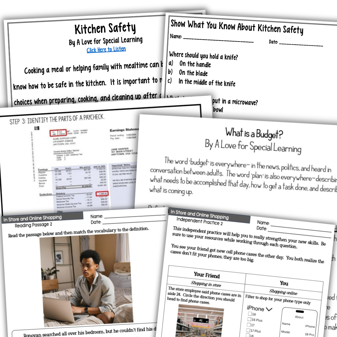 Sample lessons from the Functional Math, Life Skills, and Consumer Math curriculum sent directly to your inbox!