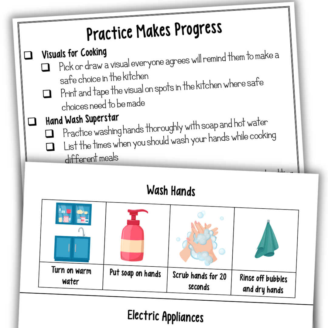 Through age-appropriate graphics and hands-on practice, students build independent living skills, preparing them to contribute at home and access their community.